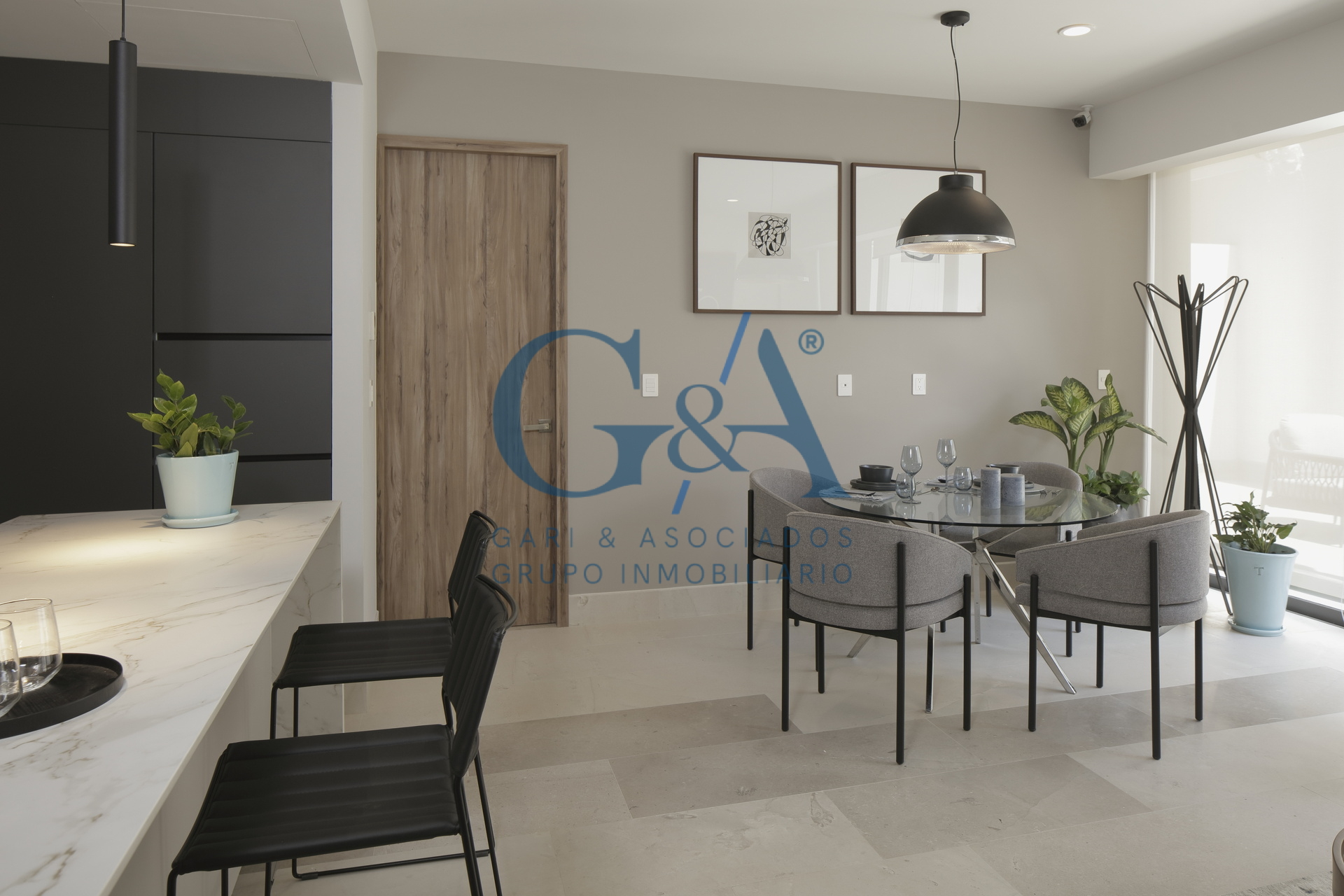 • Cocina equipada con piedra tecnológica, electrodomésticos incluidos y sistema de cerrado lento.