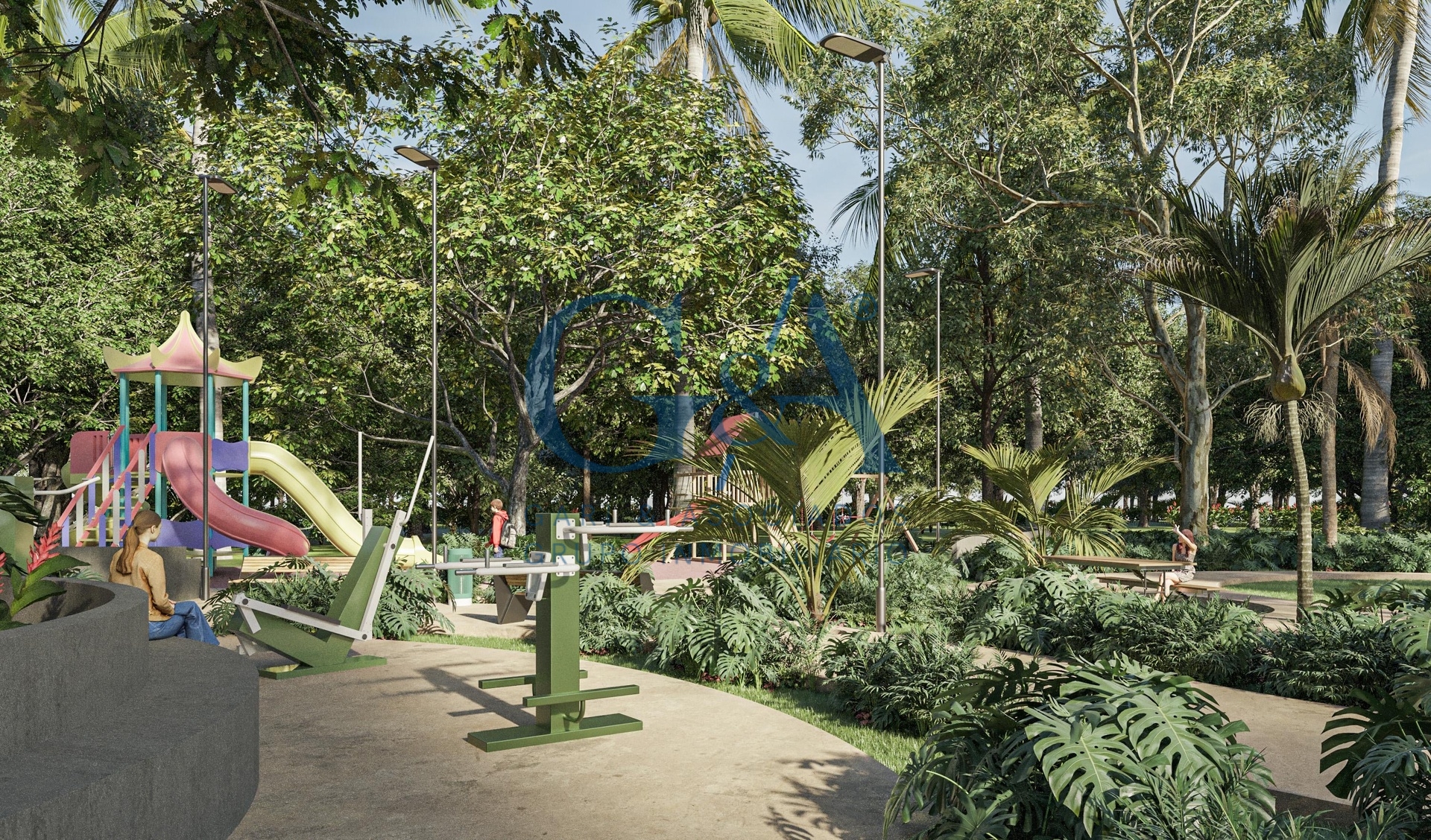 • Andadores, corredores y áreas verdes en todo el desarrollo